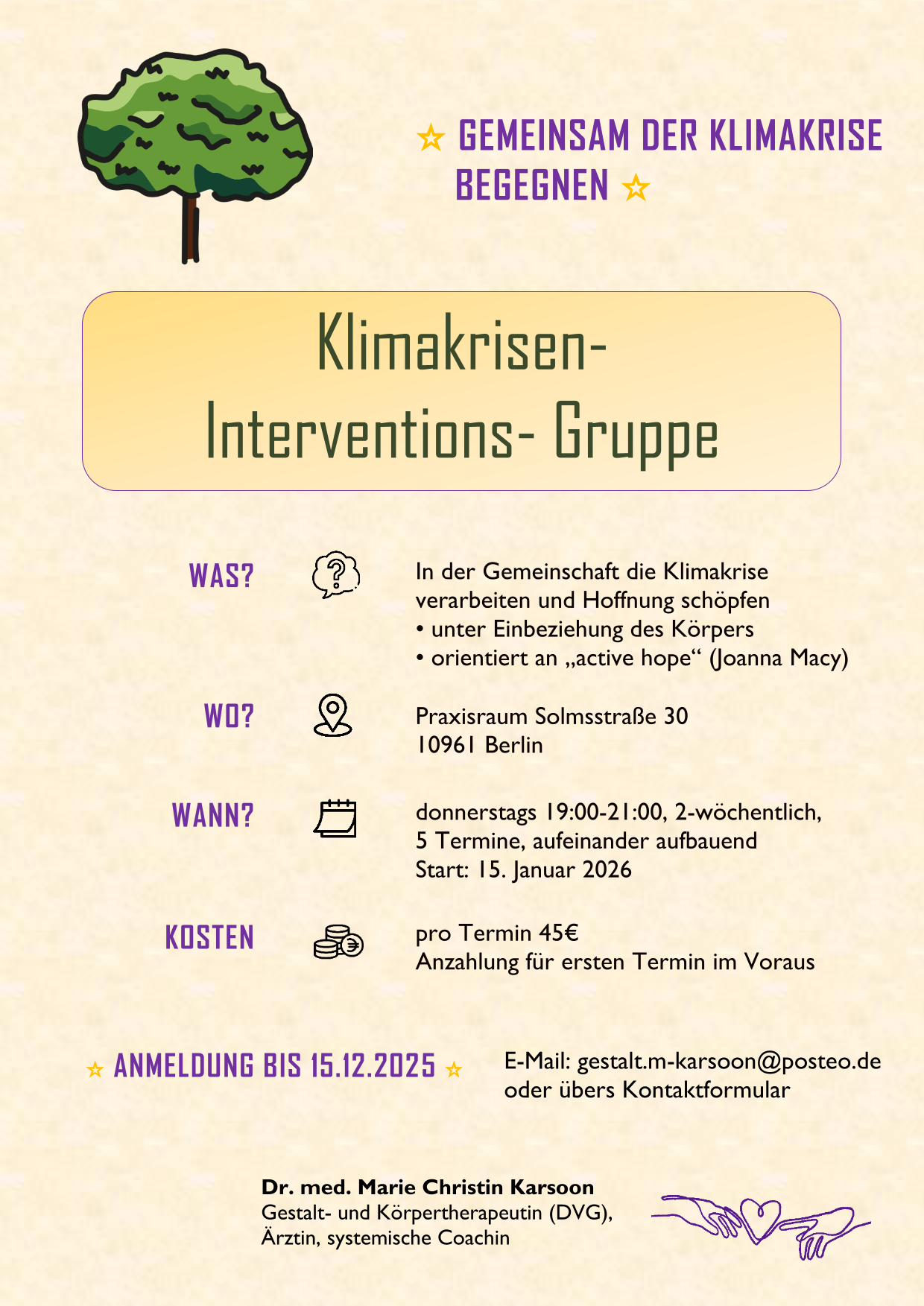 Anmeldungen über das Kontaktformular oder direkt per Mail an gestalt.m-karsoon@posteo.de